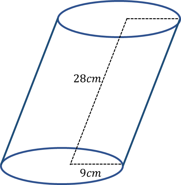 Thus, the volume of the oblique cylinder given in the above figure can be calculated as,