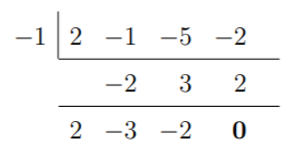 In this case, –1 gives a remainder of 0. Thus, –1 is a solution to f. The result of this synthetic division also tells us that we can factorize f as: