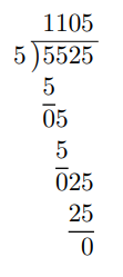 Here, we have 5.525 ÷ 5 where the dividend is 5.525 and the divisor is 5.