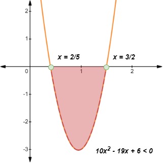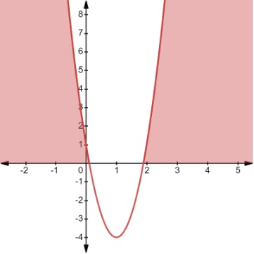 Step 3: Referring again to our table, we see that this inequality obeys Case 1 with a > 0. Since y is negative, we must choose the values of x for which the curve is below the x-axis.