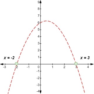 - For ax2+ bx + c < 0 identify the x-values for which the graph lies below the x-axis (since y is negative)