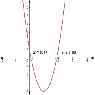 The coefficient of x2 is positive, so the curve opens up. Notice that we cannot factorize this expression using standard factoring methods. Hence, we shall apply the Quadratic Formula to determine the roots.