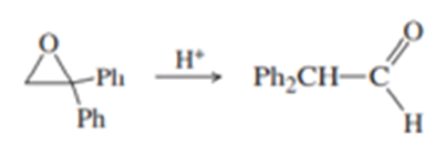(b) Under mild acid catalysis, 1,1-diphenyloxirane undergoes a smooth conversion to diphenylethanal (diphenylacetaldehyde). Propose a mechanism for this reaction. (Hint: Think Pinacol.)