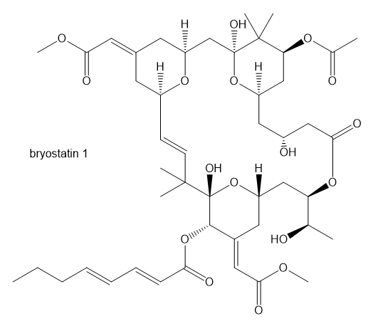 One of the crowning achievements of natural products synthesis was Bryostatin 1, published by Professor Gary Keck (University of Utah; Journal of the American Chemical Society,2011, 133, 744-747). The Bryostatins are a family of compounds isolated from aquatic invertebrates known as Bryozoans. The compounds are of interest for a variety of biological effects, including anti-cancer activity and reversing brain damage in rodents.
