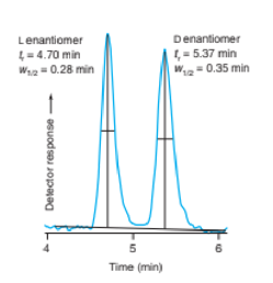 The figure shows the separation of two enantiomers on a chiral stationary phase.