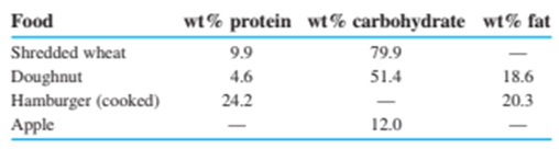 Protein and carbohydrates provide, whereas fat gives . (Remember that 1 Calorie , with a capital C, is really .) The weight percentages of these components in some foods are