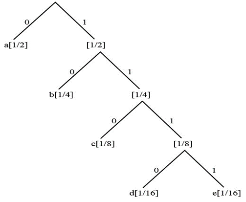 - Huffman encoding of the symbols a,b,c,d,e, is