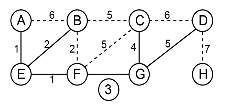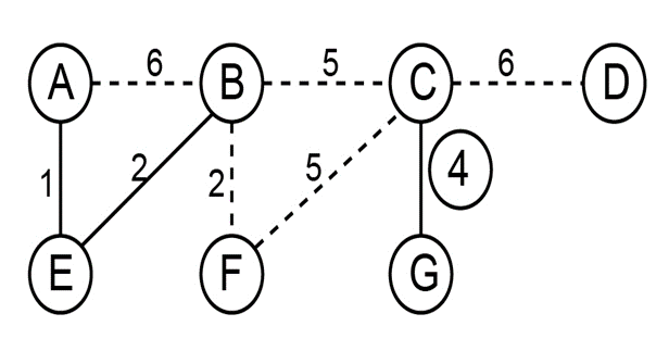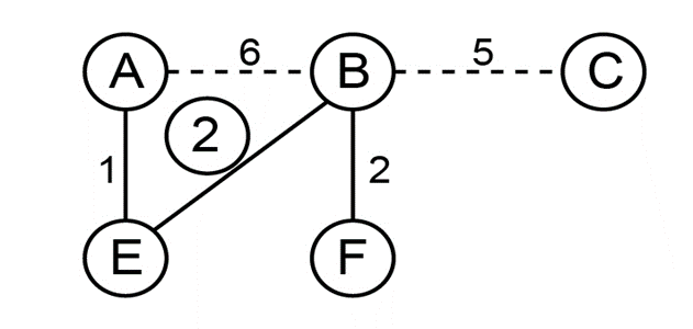 鈥 The vertex "B " has four edges with weights of 6 vertices from B to A ,5 vertices from B to C ,2 vertices from B to E , and 2 vertices from B to F . From B to E vertices, the minimum weights are 2; from B to F vertices, the minimum weights are 2. Take a look at the initial minimal weight value. As a result, the minimal weight 2 from B to E vertices are as follows: