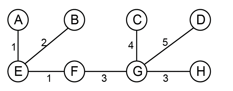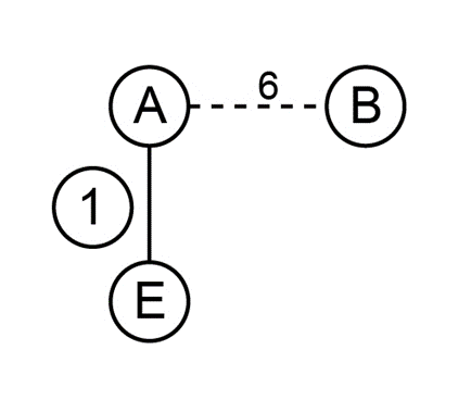 鈥 The vertex "E " has three edges with weights of one from E to A , two from E to B, and one from E to F vertices.