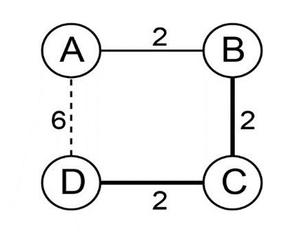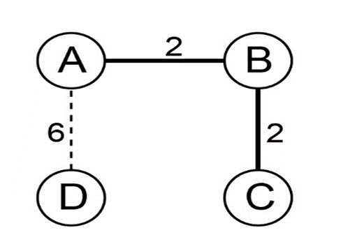 As a result, route is the shortest path from point A to point D, with a cost of "6 ". And when the edge weight is raised by the same amount, the shortest pathways may vary.