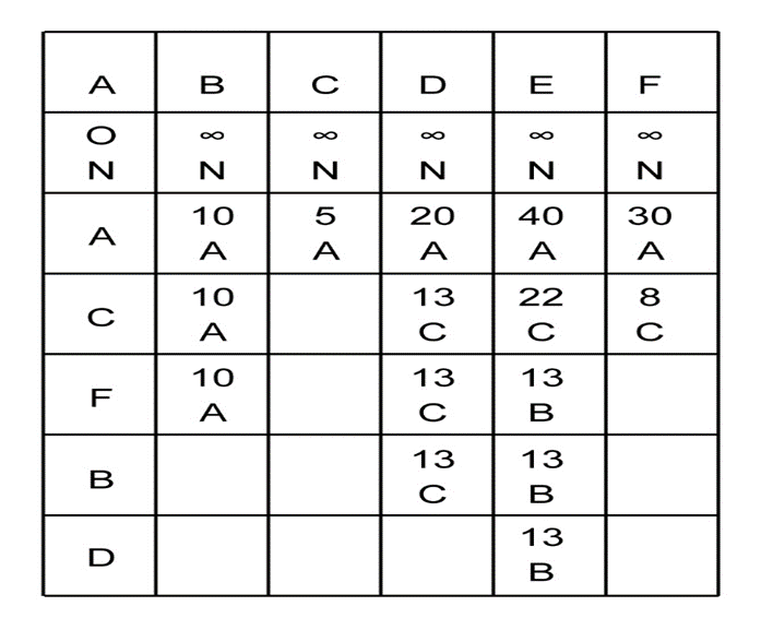 From A the distance of A is zero and take the distance of vertex A from each and every vertex is infinity.