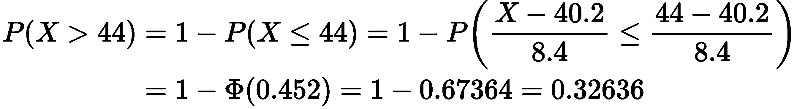 The annual rainfall in Cleveland, Ohio, is approximately a normal random variable with mean 40.2 inches and standard deviation 8.4 inches. What is the probability that (a) next year’s rainfall will exceed 44 inches? (b) the yearly rainfalls in exactly 3 of the next 7 years will exceed 44 inches? Assume that if Ai is the event that the rainfall exceeds 44 inches in year i (from now), then the events Ai, i Ú 1, are independent.