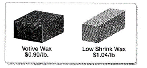 A candle supply store sells votive wax and low-shrink wax. How many pounds of low -shrink wax should be mixed with 8 pounds of votive wax to obtain a blend that sells for a pound?