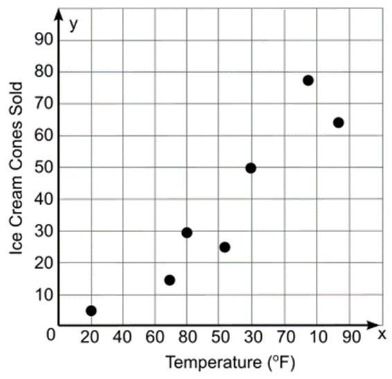 The graph shows the relationship between outside temperature and daily ice cream cone sales. What type of correlation is shown.