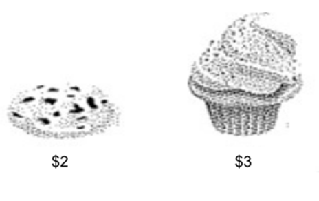 BAKERY Ben has $24 to spend on cookies and cupcakes. Write and graph an inequality that represents what Ben can buy.