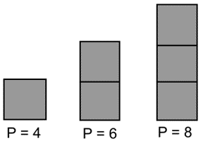Write a formula that can be used to find the perimeter of a figure containing squares.