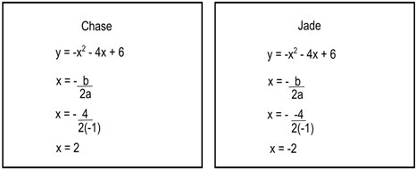 FIND THE ERROR Chase and Jade are finding the axis of symmetry of a parabola. Is either of them, correct? Explain your reasoning.