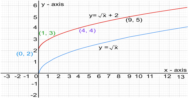 The parent graph is graph of . The graph of the function is obtained by shifting the graph of the function vertically up by 2 units.