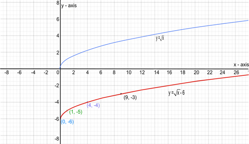 The parent graph is graph of . The graph of the function is obtained by shifting the graph of the function vertically down by 6 units.