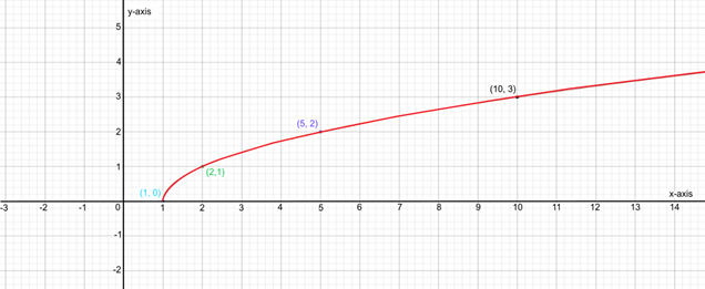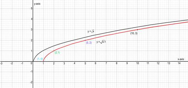 The parent graph is graph of . The graph of the function is obtained by shifting the graph of the function horizontally right by 1 unit.