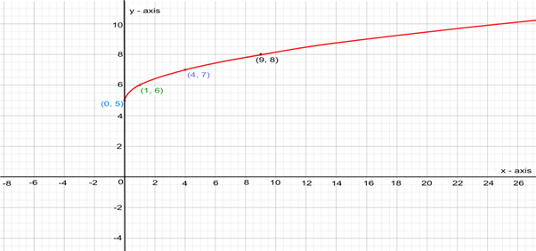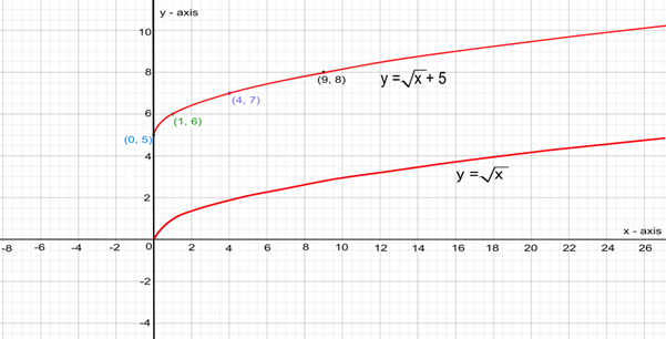 The parent graph is graph of . The graph of the function is obtained by shifting the graph of the function vertically up by 5 units.