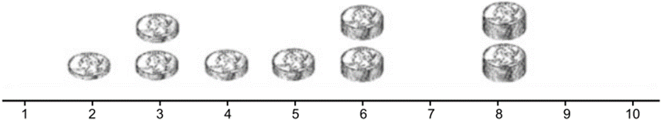 b. GRAPHICAL Make a line plot of the stacks. Above each of these columns, record how much each stack differs from the mean (the number of coins per stack). Find the absolute value of each of these values.