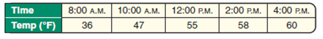 For Exercises 12-14, use the table that shows the temperatures at different times on March 23, 2002.