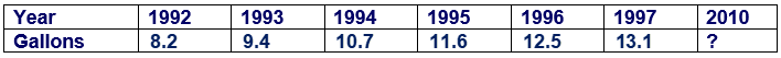 6. Health Bottled water has become very popular. The table shows the number of gallons of bottled water consumed per person in some recent years.