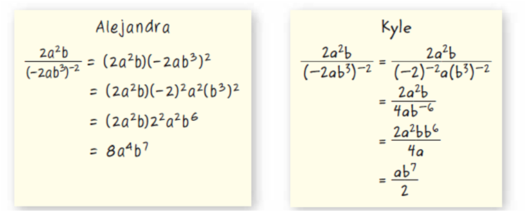 Alejandra and Kyle both simplified. Who is correct? Explain your reasoning.