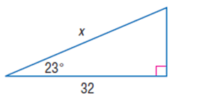 Write an equation involving that can be used to find x. Then solve the equation. Round measures of side to the nearest tenth and angles to the nearest degrees.