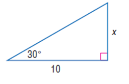 Write an equation involving that can be used to find x. Then solve the equation. Round measures of side to the nearest tenth and measures of angles to the nearest degrees.