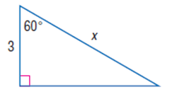 Write an equation involving that can be used to find x. Then solve the equation. Round measures of side to the nearest tenth and measures of angles to the nearest degrees.