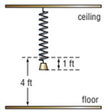 A weight is attached to a spring and suspended from the ceiling. At equilibrium, the weight is located 4 feet above the floor. The weight is pulled down 1 foot and released.
