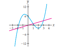 Shade in the regions between the two functions shown here on the intervals (a) ; (b) and (c). Which of these regions has the largest area? The smallest?