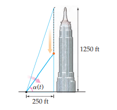 (a) Find a formula for the angle of elevation from the ground at your feet to the height of the penny seconds after Max drops it. Multiply by an appropriate constant so that is measured in degrees.