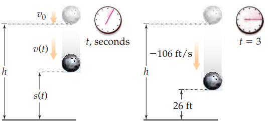 On earth, A falling object has a downward acceleration of 32 feet per second per second due to gravity. Suppose an object falls from an initial height of ,With an initial velocity of feet per second, Use antiderivatives to show that the equations for the position and velocity of the object after t seconds are respectively and