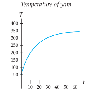 (a) Use the graph to approximate the temperature of the yam when it is first put in the oven.