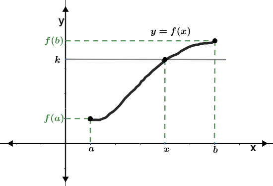 A labeled graph of a function that satisfies the hypothesis of the Intermediate Value Theorem is