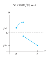 A labeled graph of a function that fails to satisfy the hypothesis of the Intermediate Value Theorem is