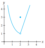 For each function f graphed in Exercises 23–26, describe the intervals on which f is continuous. For each discontinuity of f, describe the type of discontinuity and any one-sided continuity. Justify your answers about discontinuities with limit statements.