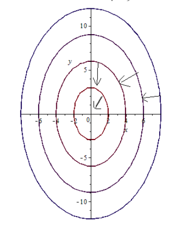 The graphs of three gradient vectors on each level curve is included and it is observed that the gradient and tangent vectors are othogonal
