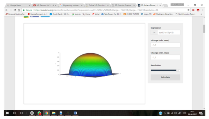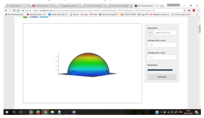 Part (d) The graph of function is half of a sphere of dimension in