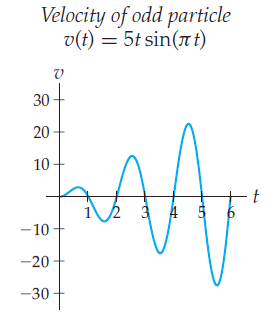 Suppose a very odd particle moves back and forth along a straight path in such a way that its velocity after t seconds