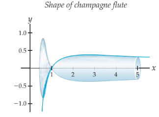 Dr. Geek also owns some champagne flutes, which are shaped exactly like the shape obtained by revolving the graph of from to around the -axis, as shown in the figure and measured in inches. Given that the volume of the shape obtained from revolving around the -axis oncan be calculated with the formula about how much champagne can each glass hold?