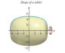 A pharmaceutical company is designing a new drug whose shape in tablet form is obtained by rotating the graph of on the interval around the x-axis, where units are measured in millimeters.