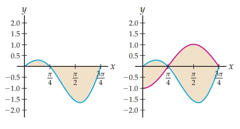(b) Find the area between the graph ofand the graph ofrole="math" localid="1650063304032" onshown in the figure next at the right.