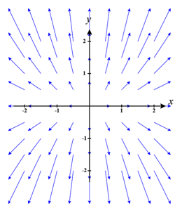 If the velocity of a flow of a gas at a point (x, y, z) is represented by F and the gas is expanding at that point, what does this imply about the divergence of F at the point?
