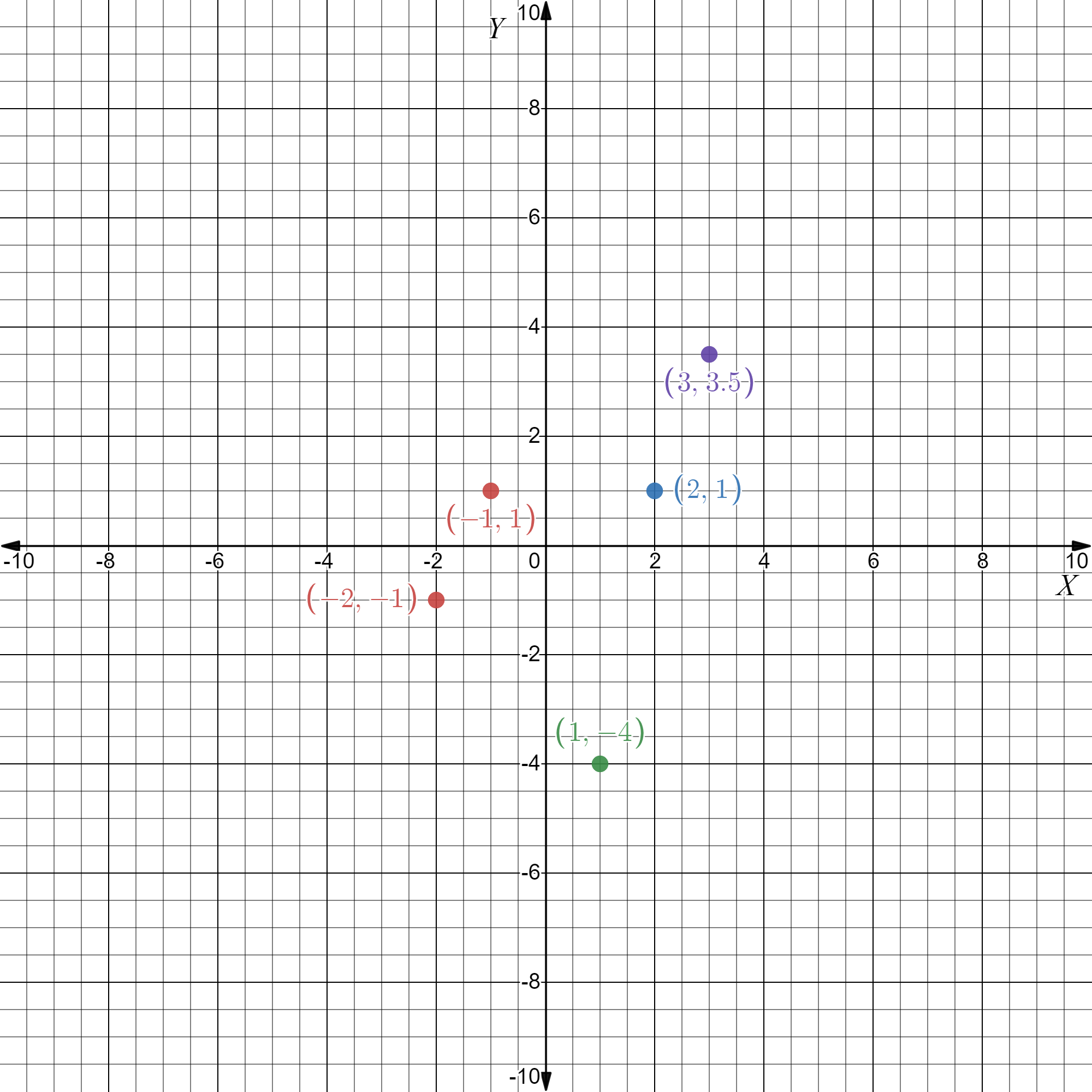 In the following exercises, plot each point in a rectangular coordinate system and identify the quadrant in which the point is located.