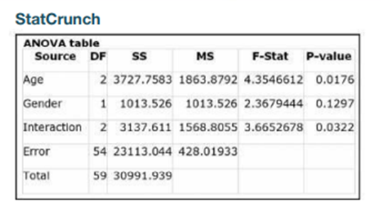 Weights The weights (kg) in the following table are from Data Set 1 鈥淏ody Data鈥 in Appendix B. Results from two-way analysis of variance are also shown. Use the displayed results and use a 0.05 significance level. What do you conclude?