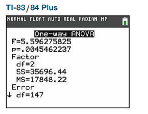 Fast Food Dinner Service Times Data Set 25 鈥淔ast Food鈥 in Appendix B lists drivethrough service times (seconds) for dinners at McDonald鈥檚, Burger King, and Wendy鈥檚. Using those times with a TI-83>84 Plus calculator yields the following display. Using a 0.05 significance level, test the claim that the three samples are from populations with the same mean. What do you conclude?